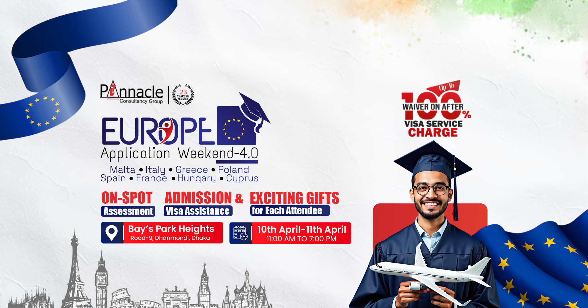 Following the huge success of our previous Europe Application Weekend series, Pinnacle Consultancy Group proudly presents Europe Application Weekend 4.0 โ bigger, better, and packed with more opportunities for Bangladeshi students!